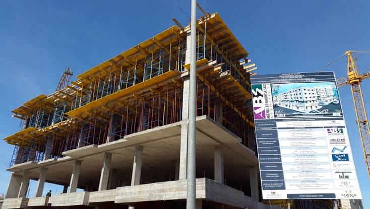 Construction du groupe GH5 d’une résidence haut standing de 7 immeubles R+3 avec 2 sous sol à l’Oasis, Casablanca.